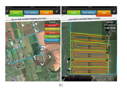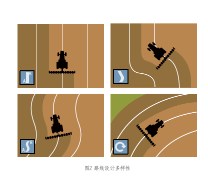 在实际的工作中,首先用GNSS测量出农场的区域地图,根据地图设计出农机的实际耕作路线,如图1、图2。