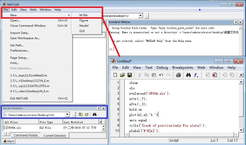 2、 打开Matlab程序,选择数据的存储路径并新建M文件。